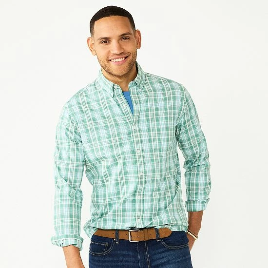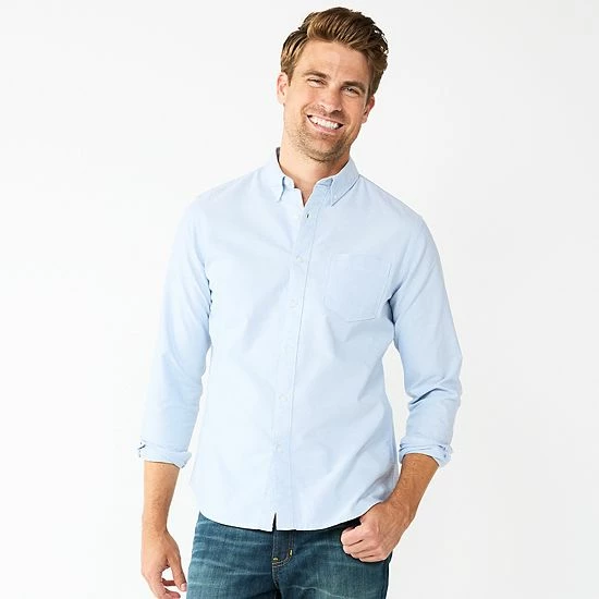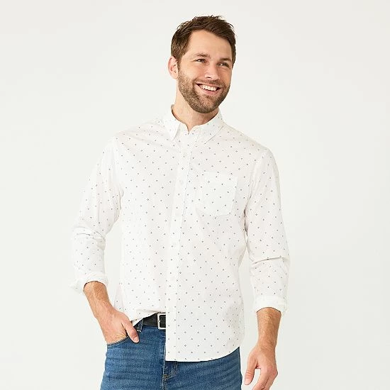 Whether you wear it tucked in or untucked, you’ll look perfectly posh wearing this men’s Sonoma Goods For Life button-down perfect-length shirt.