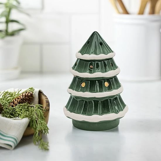 Decorate your home with warmth this season with this Sonoma Goods For Life Ceramic Snow Capped Tree Wax Warmer.